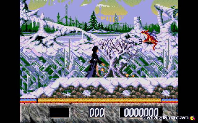 La pega, aparte de la poca originalidad del juego (recuerda, sobretodo en el mundo de fuego, al "Risky Woods" de Dinamic), es la lentitud con la que se mueve nuestra heroÃna, especialmente cuando toca saltar o cambiar de dirección, algo que a menudo significa chocar con algún enemigo y perder energÃa en el proceso.